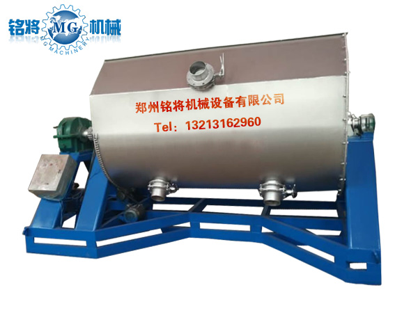 本產(chǎn)品采用U型外觀設(shè)計(jì),內(nèi)部采用雙層螺帶設(shè)計(jì)。即在水平的主軸上裝有兩條或多條輸送能力相同,螺徑不同,螺轉(zhuǎn)方向不同的螺帶。通常是當(dāng)主軸轉(zhuǎn)動(dòng)時(shí),一條螺帶把物料從左至右輸送,另一條螺帶把物料從右至左輸送。因而在機(jī)內(nèi)發(fā)生對(duì)流穿插混合作用,達(dá)到混合均勻的目的
