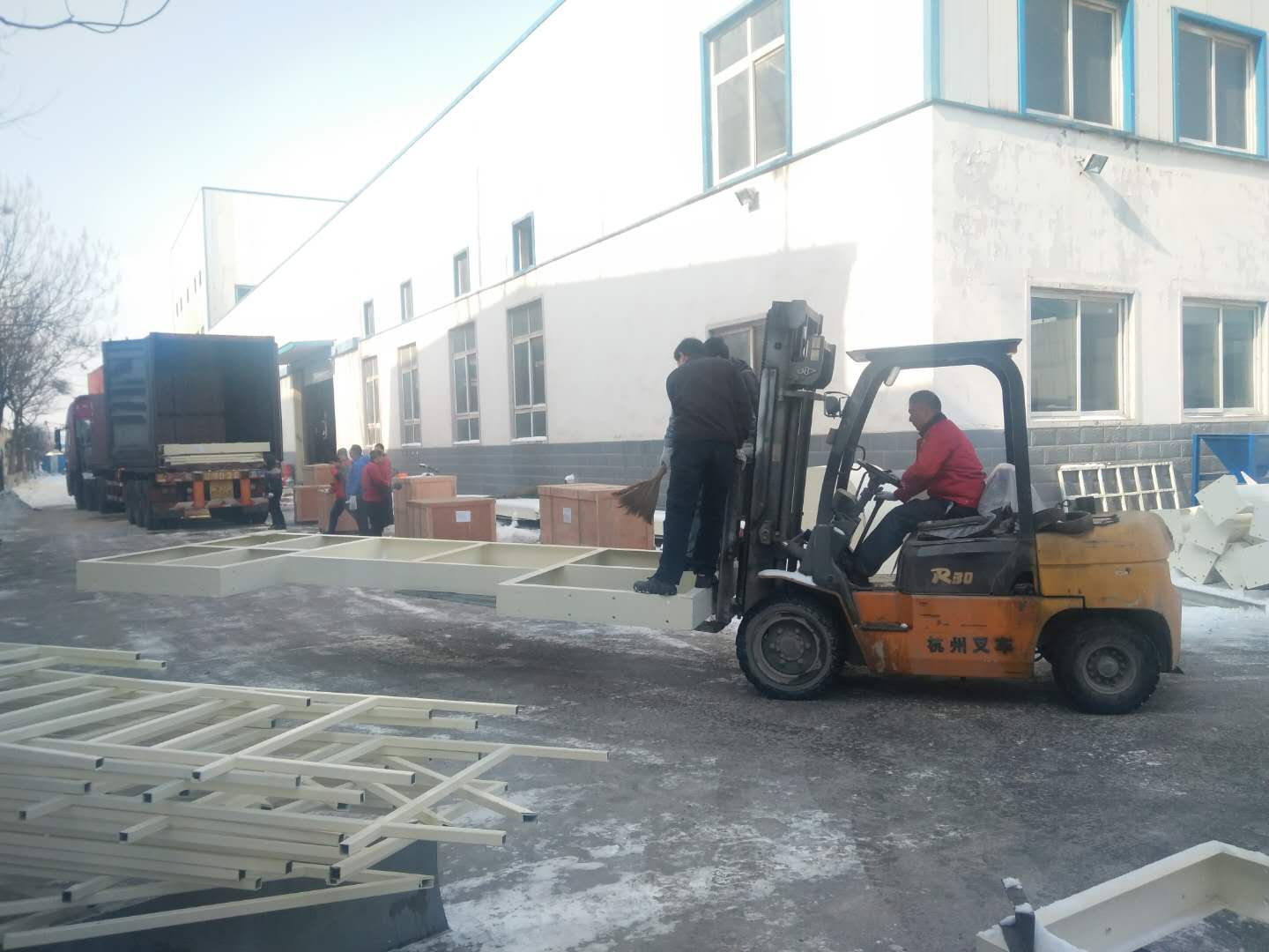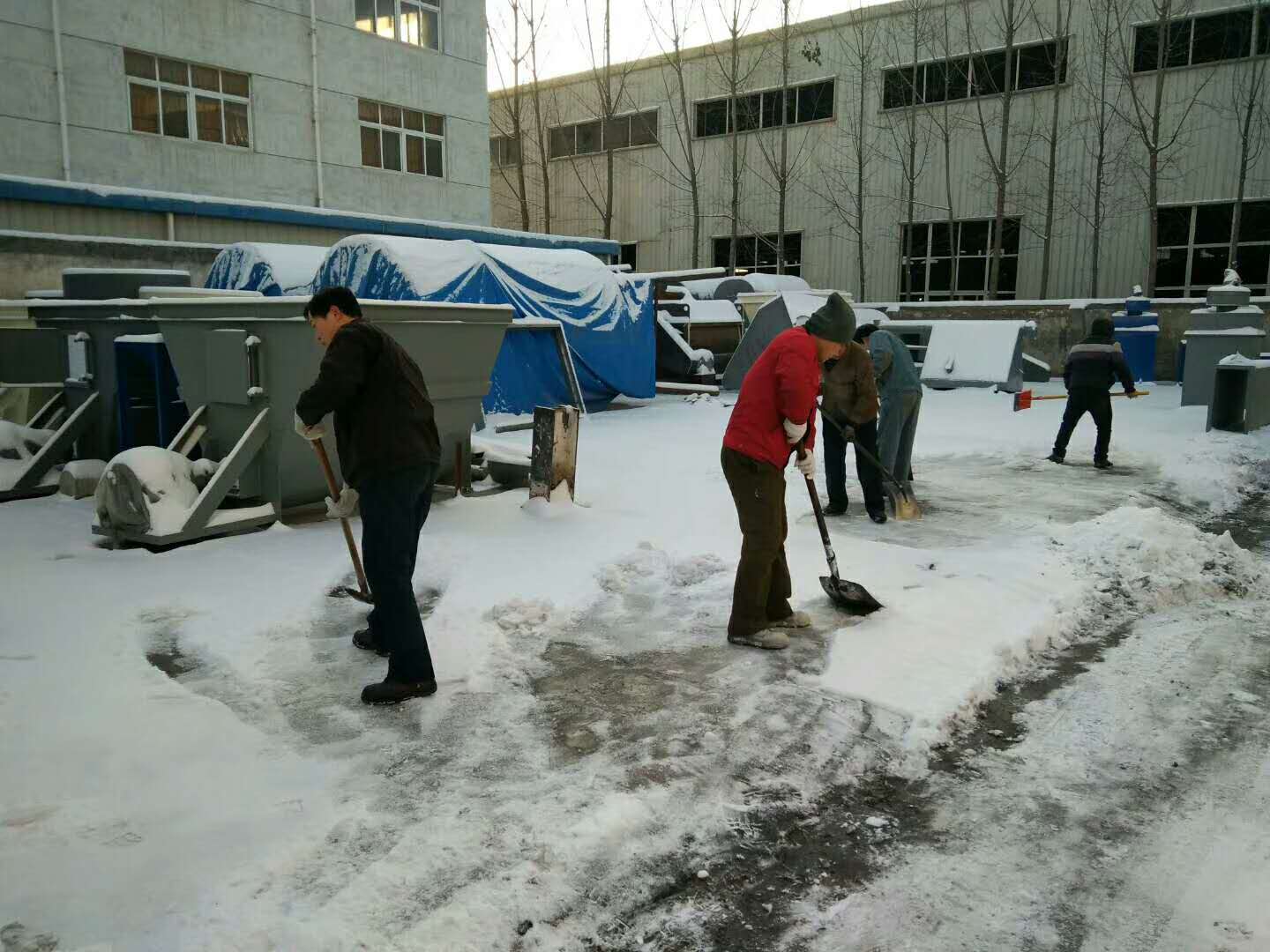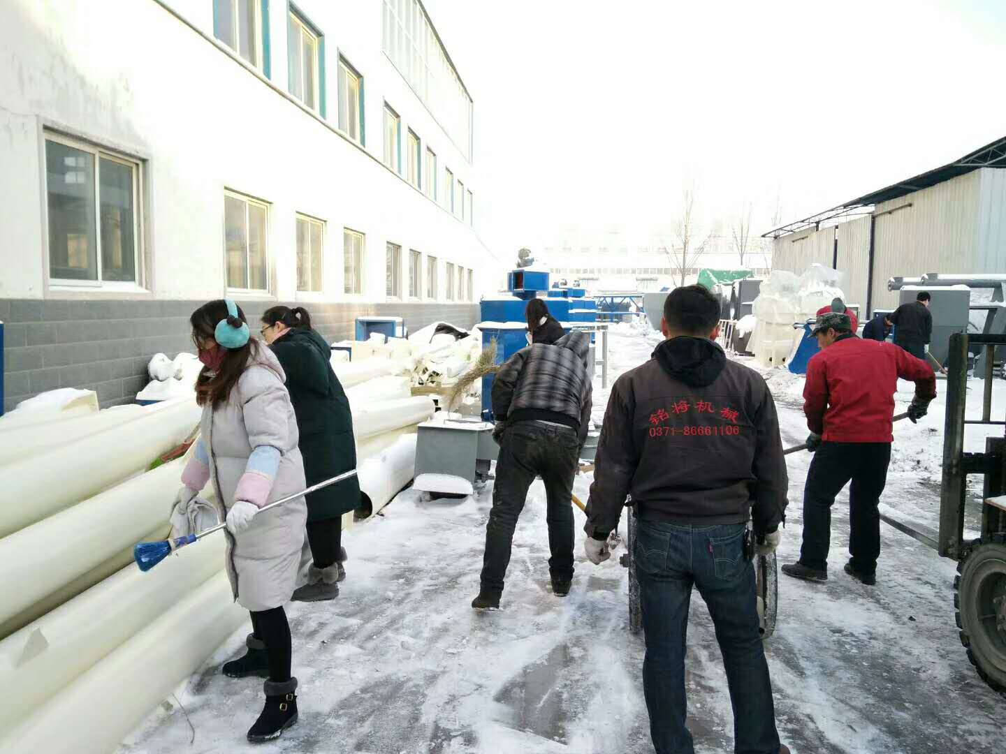 這場(chǎng)雪持續(xù)一天一夜,整裝待發(fā)的設(shè)備上蓋著厚厚的一層雪,為了不耽誤客戶(hù)的工期,正常發(fā)貨,一大清早銘將全體員工集體出動(dòng),清掃設(shè)備上的雪,大家不怕嚴(yán)寒,始終飽含工作熱情和高昂的斗志,有力的為塞爾維亞的正常發(fā)貨做好準(zhǔn)備。
